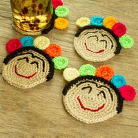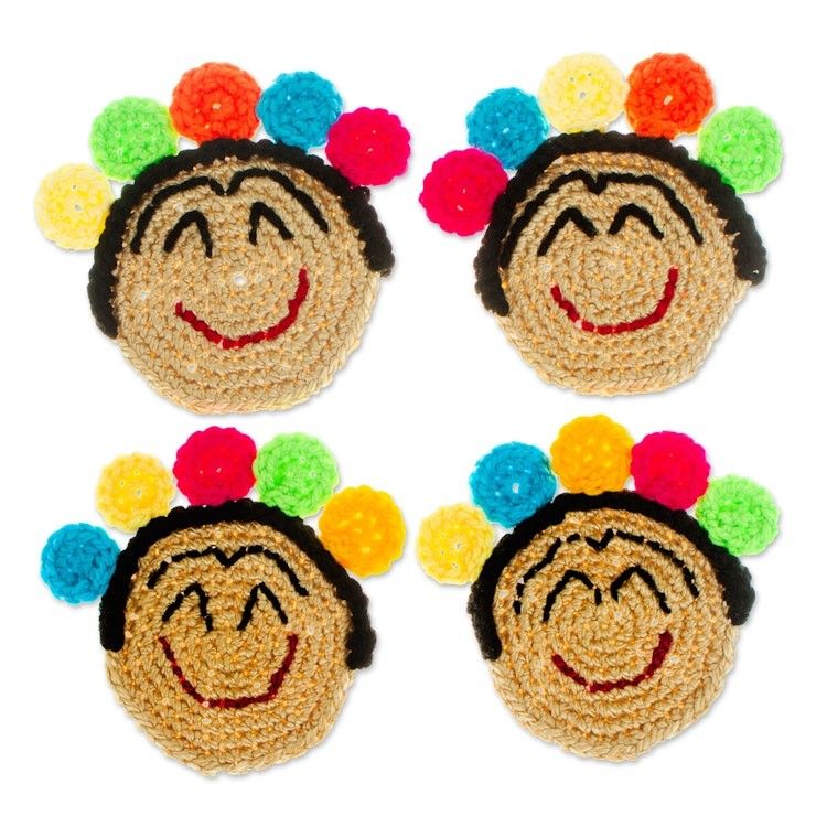 Set of 4 Frida Kahlo Crocheted Coasters from Mexico 'Festive Frida' Item ID: 2671807378