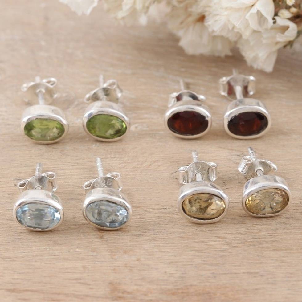 This set of stud earrings is everything I need - the variety of gemstones is perfect, and their sterling settings are beautiful and simple. I will wear these most day!