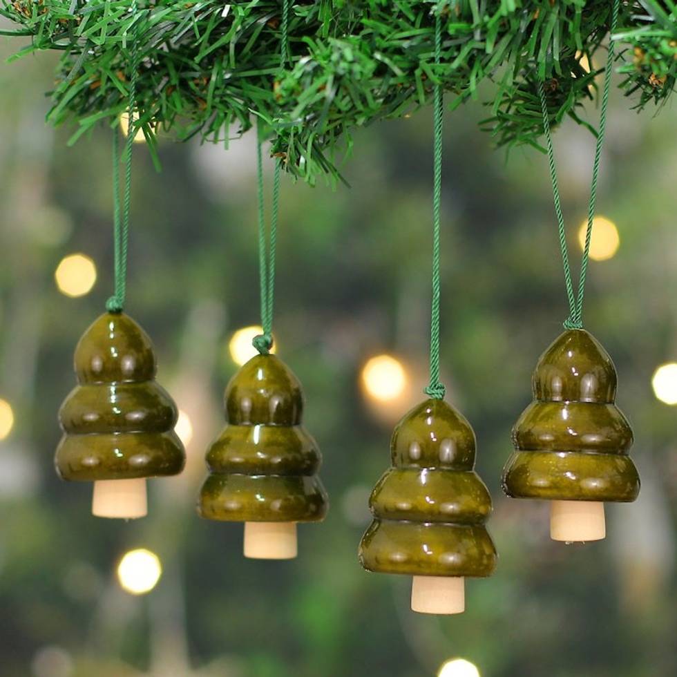 Set of 4 Green Pala Indigo Wood Channapatna Tree Ornaments 'Green Jingle' Item ID: 2671781166
