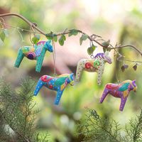 Set of 4 Hand-Carved Horse Christmas Ornaments from Bali 'Dala Holiday' Item ID: 2671748097