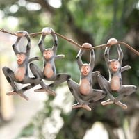 Set of 4 Hand-Painted Albesia Wood Monkey Ornaments 'Playful Jungle' Item ID: 2671765275