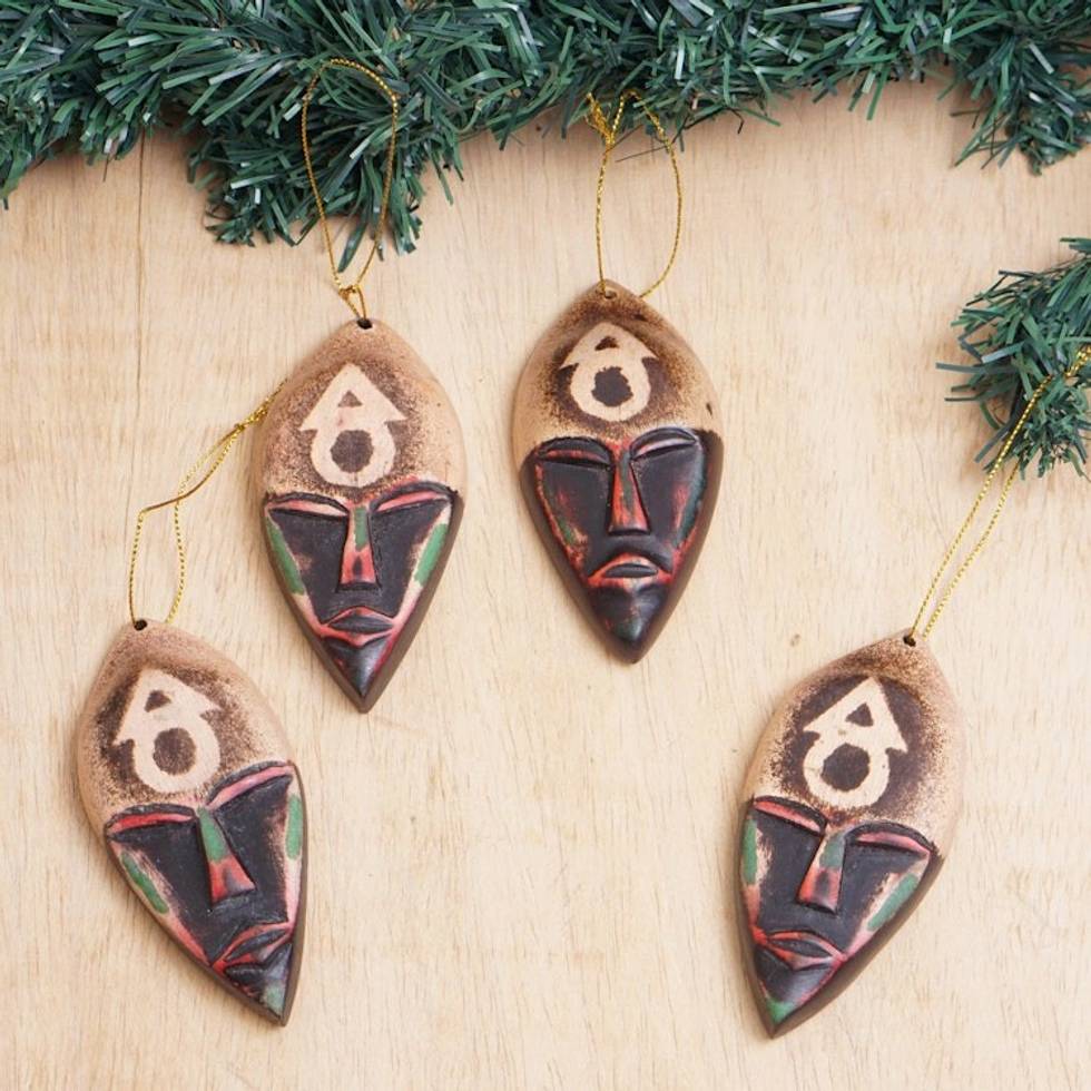 Set of 4 Hand-Painted Brown and Black Sese Wood Ornaments 'Ghana Wishes' Item ID: 2671803939