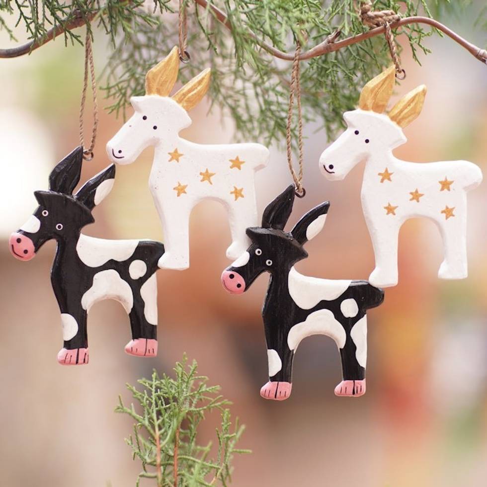 Set of 4 Hand-Painted Deer Ornaments Crafted from Wood 'Magic Deers' Item ID: 2671763385