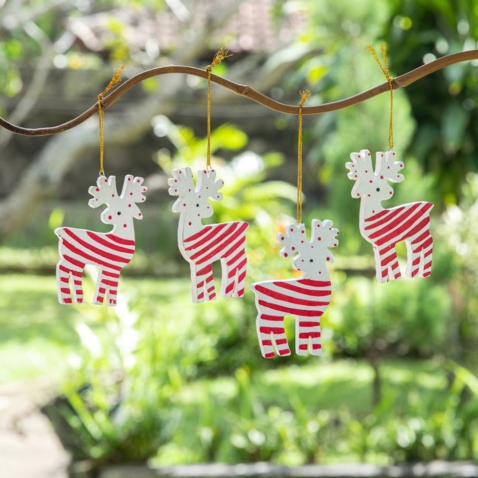 Set of 4 Hand-Painted Wood Holiday Reindeer Ornaments 'Merry Reindeer' Item ID: 2671764560