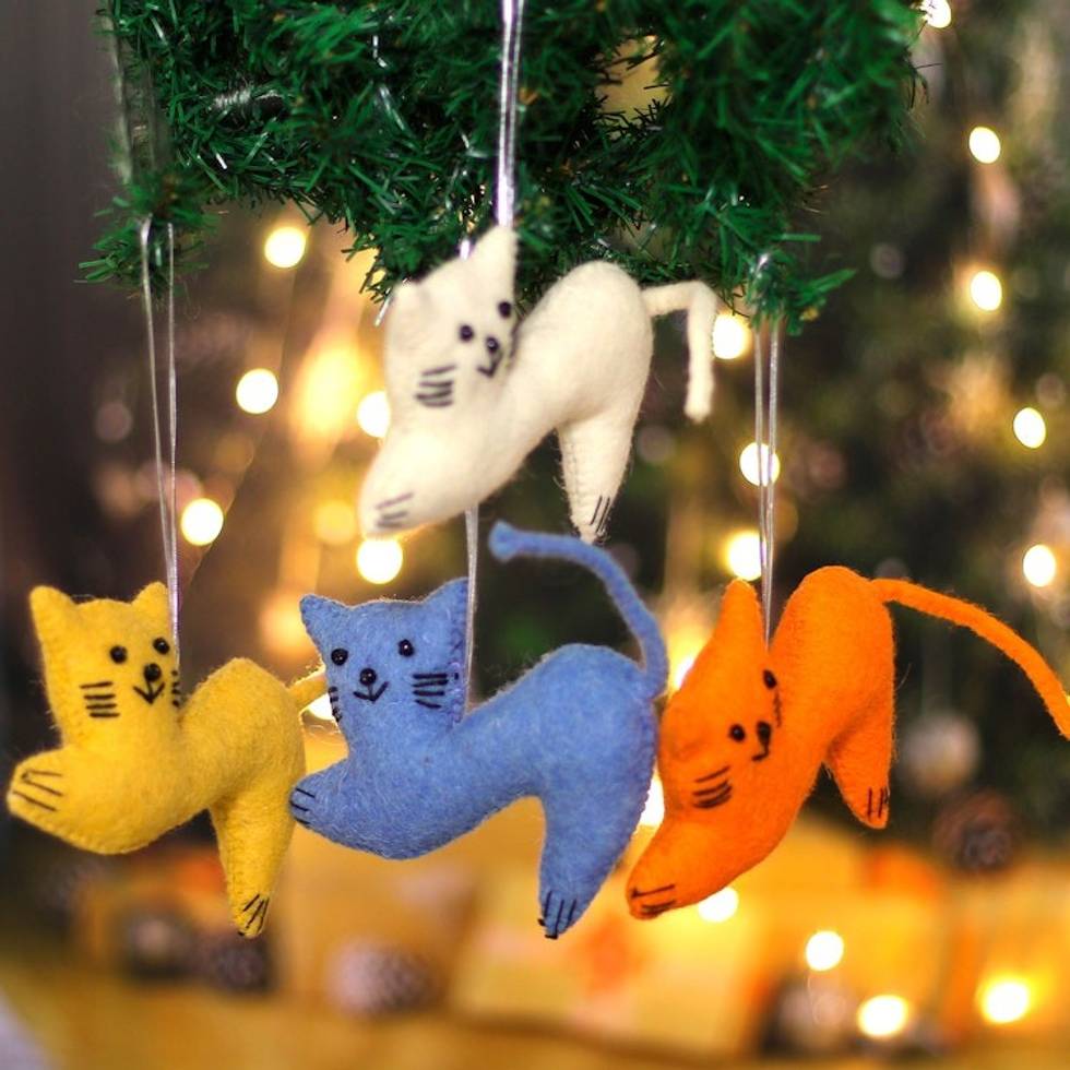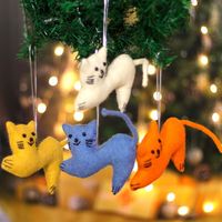 Set of 4 Handcrafted Cat-Shaped Wool Felt Ornaments 'Festive Kittens' Item ID: 2671782220