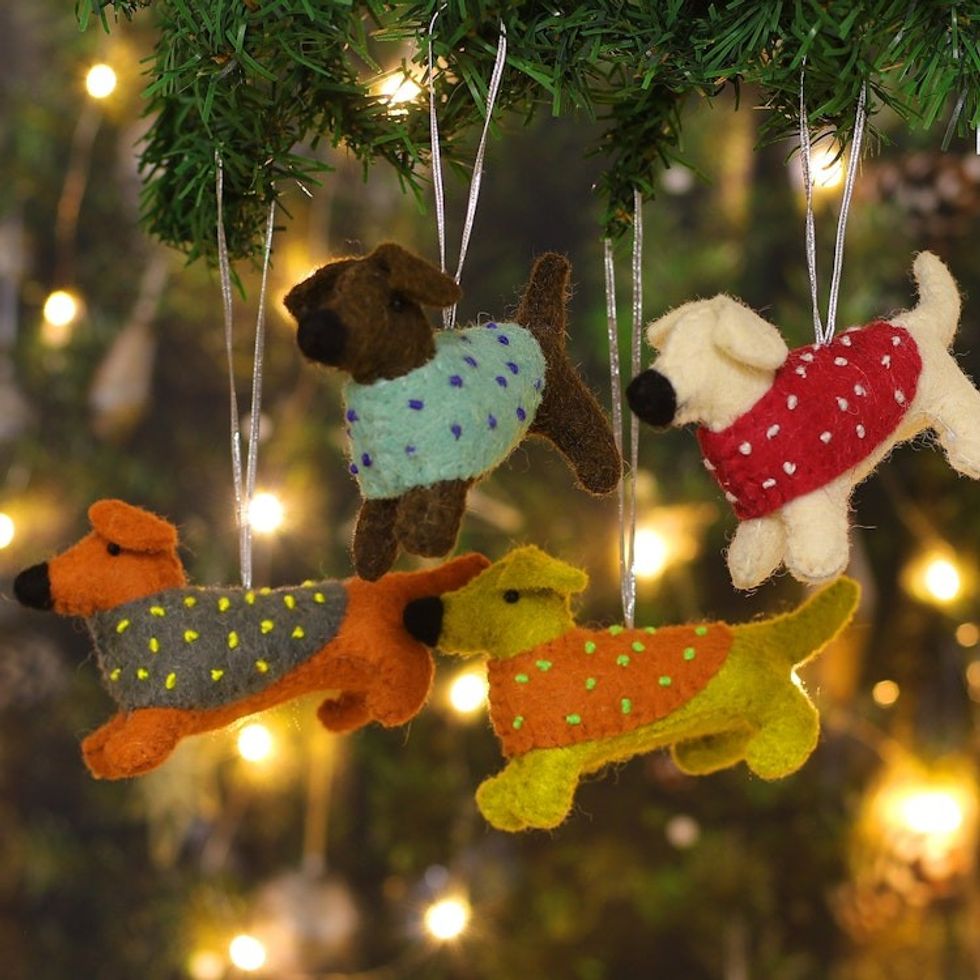 Set of 4 Handcrafted Dog-Shaped Wool Felt Ornaments 'Festive Puppies' Item ID: 2671622007