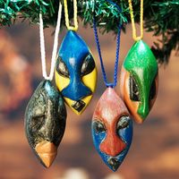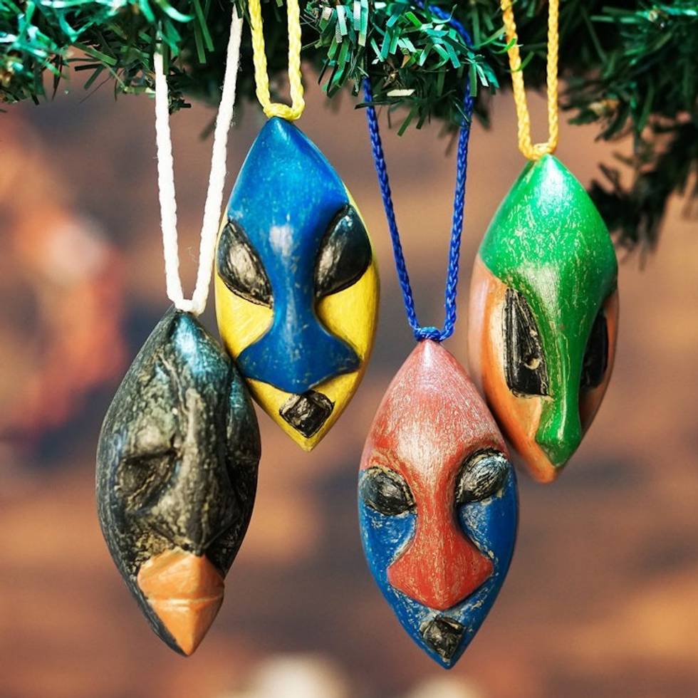 Set of 4 Handcrafted Ofram Wood African Mask Ornaments 'Okwonko' Item ID: 2671804080