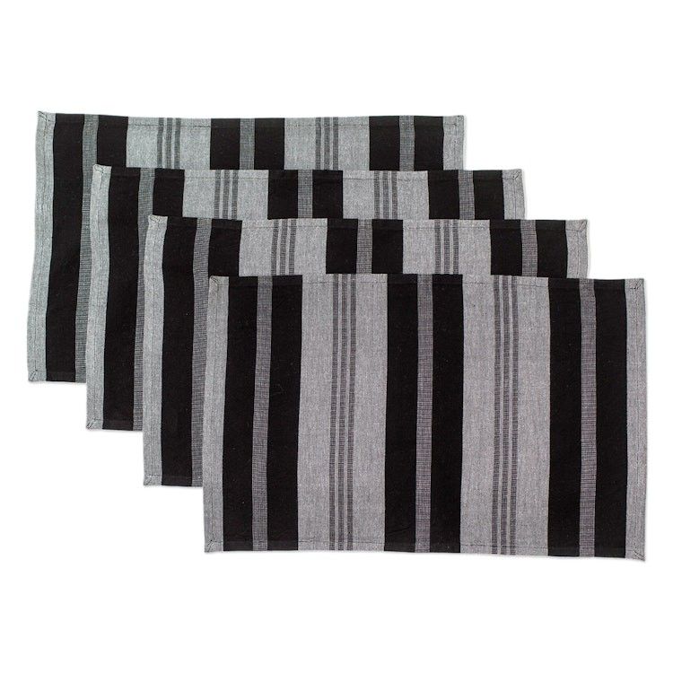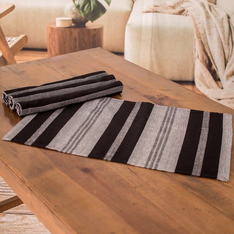 Set of 4 Handloomed Striped Grey and Black Cotton Placemats 'Shadows of Delight' Item ID: 2671770330