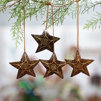 Set of 4 Handmade Brown Coconut Shell Star Ornaments 'Bright Lights in the Sky' Item ID: 2671736708