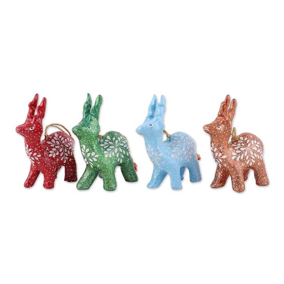 Set of 4 Handmade Colorful Reindeer Papier Mache Ornaments 'Holiday Reindeer' Item ID: 2671786795