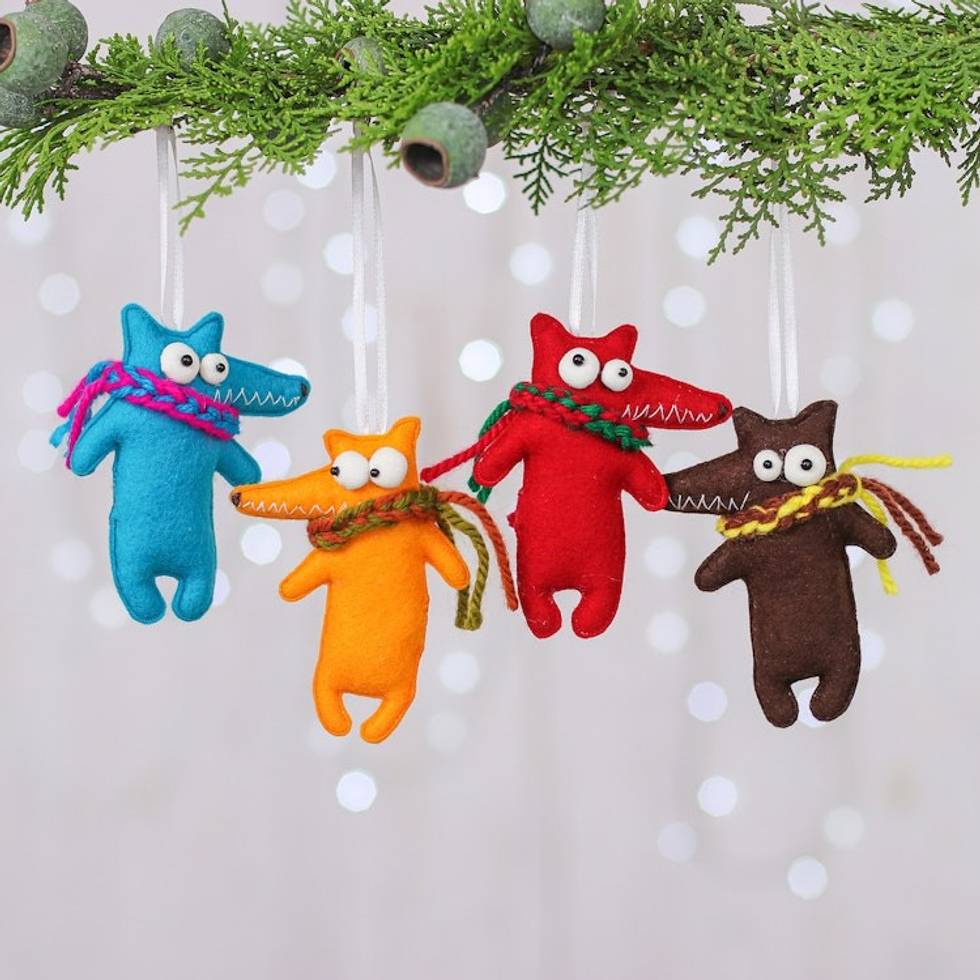 Set of 4 Handmade Crocodile Felt Ornaments in Diverse Hues 'Colors Crocodiles' Item ID: 2671798200