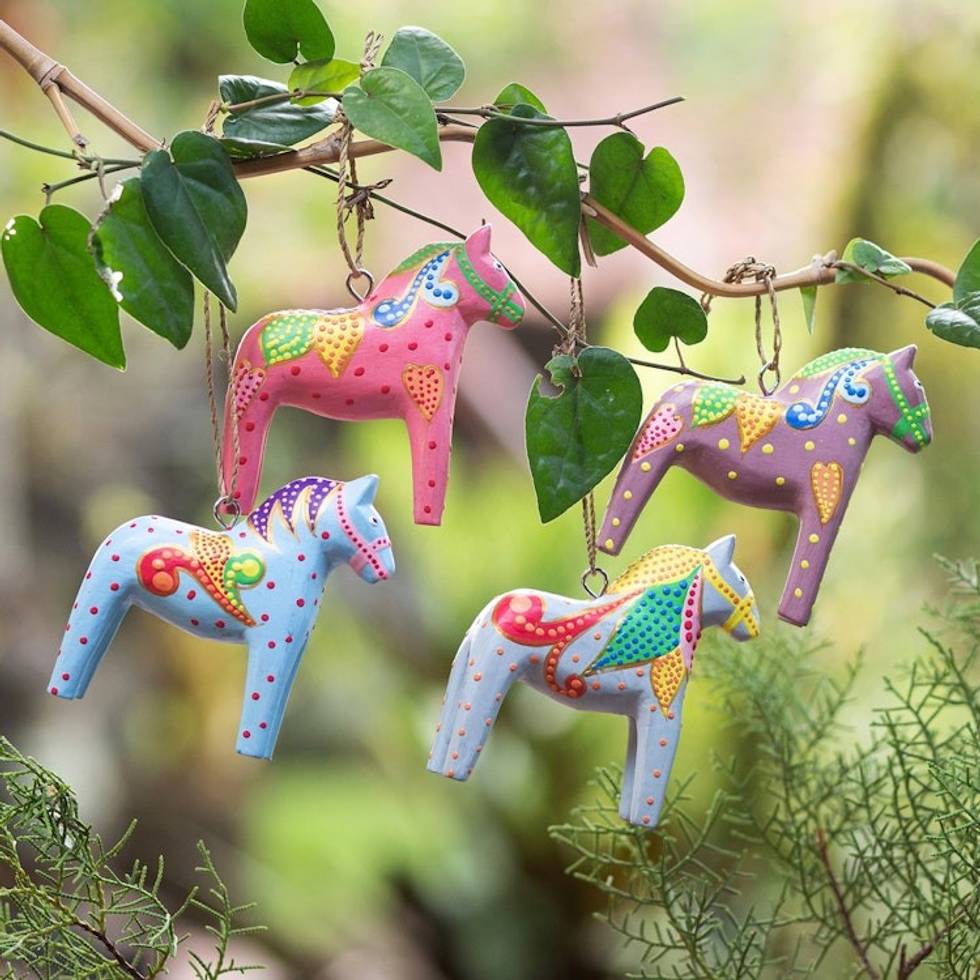 These remind my Dalarna horses from Sweden that they have cousins in warmer places! I love the tropical interpretation of the Scandinavian folk art horses, and will keep these on display year round!
