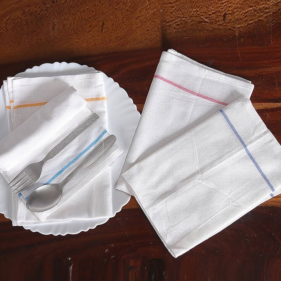 Set of 4 Handwoven Cotton Napkins with Colorful Lines 'Joyous Meals' Item ID: 2671783149
