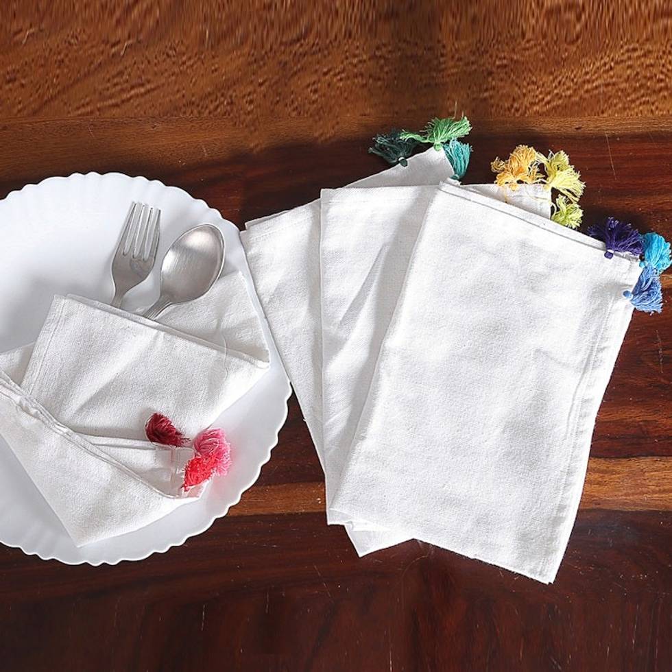 Set of 4 Handwoven Cotton Napkins with Colorful Tassels 'Tassel Meals' Item ID: 2671781863
