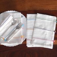 "Every dinner with loved ones has a unique feeling that makes a memorable occasion! Perfect for transforming those gatherings and delightful meals into a sweet celebration, Indian artisans Indu and Chitra handweave a set of four cotton napkins with a unique striped pattern of charming rainbow lines."