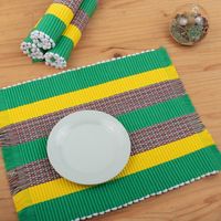 Set of 4 Handwoven Striped Viridian Cotton Blend Placemats 'Viridian Gathering' Item ID: 2671697846