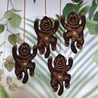 Set of 4 Mahogany Wood Hand-Painted Monkey Ornaments 'Happy Monkeys' Item ID: 2671748647