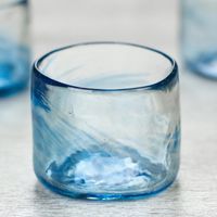 Set of 4 Mexican Clear Blue Blown Glass Rocks Glasses 5 oz 'Azure Mist' Item ID: 2669926803