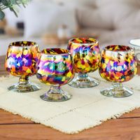 Set of 4 Multicolored Snifters Handblown from Recycled Glass 'Bright Confetti' Item ID: 2669931832