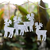 Set of 4 Silver Albesia Wood Holiday Reindeer Ornaments 'Divine Reindeer' Item ID: 2671764854