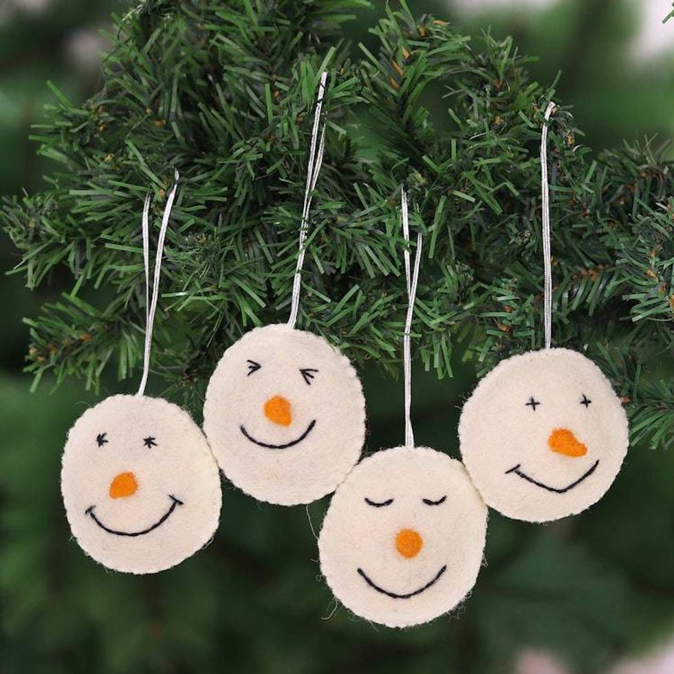Set of 4 Smiling Snowmen Wool Felt Ornaments 'Smiling Snowmen' Item ID: 2676665175