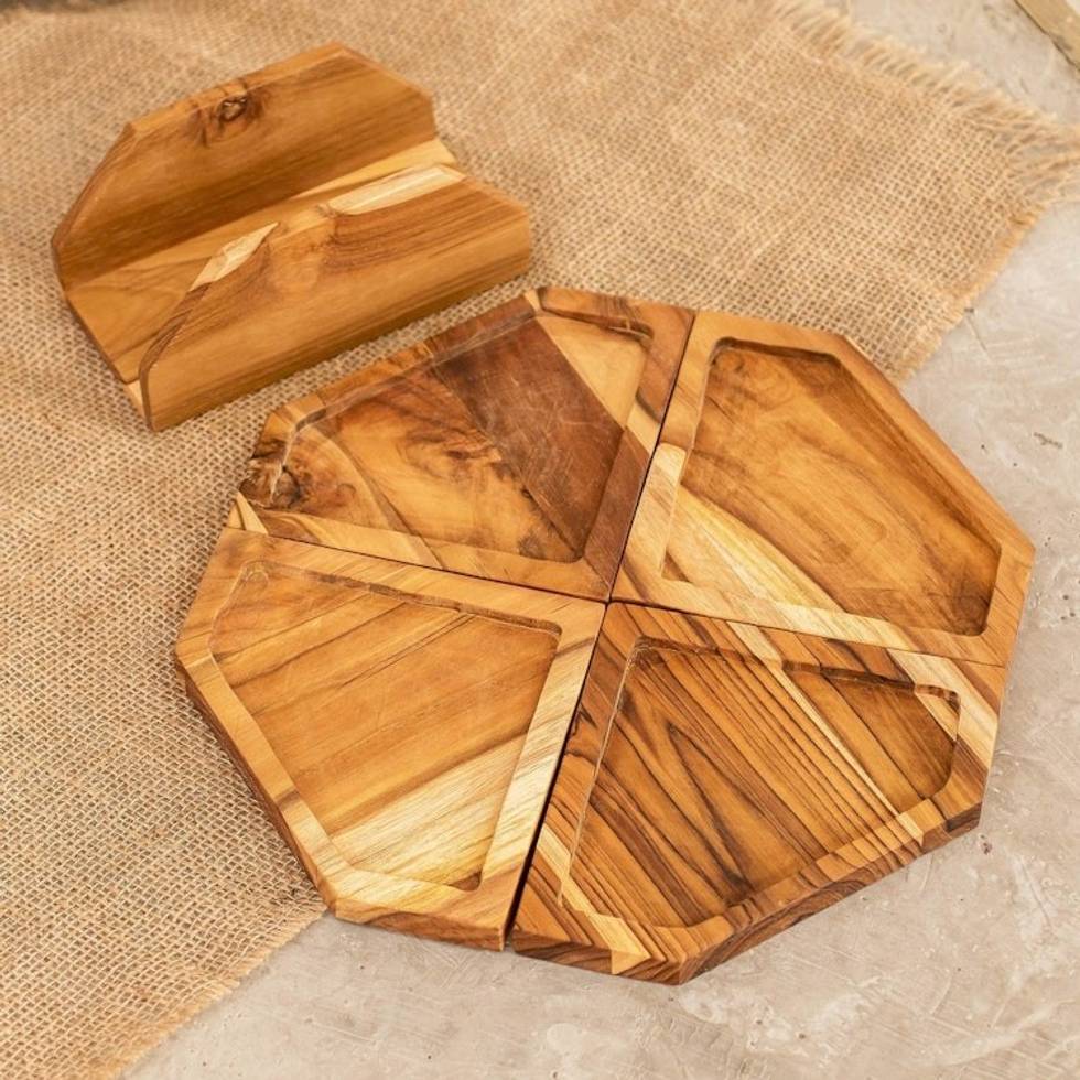 Set of 4 Teak Wood Appetizer Platters with Stand 'Sharing Time' Item ID: 2671771244