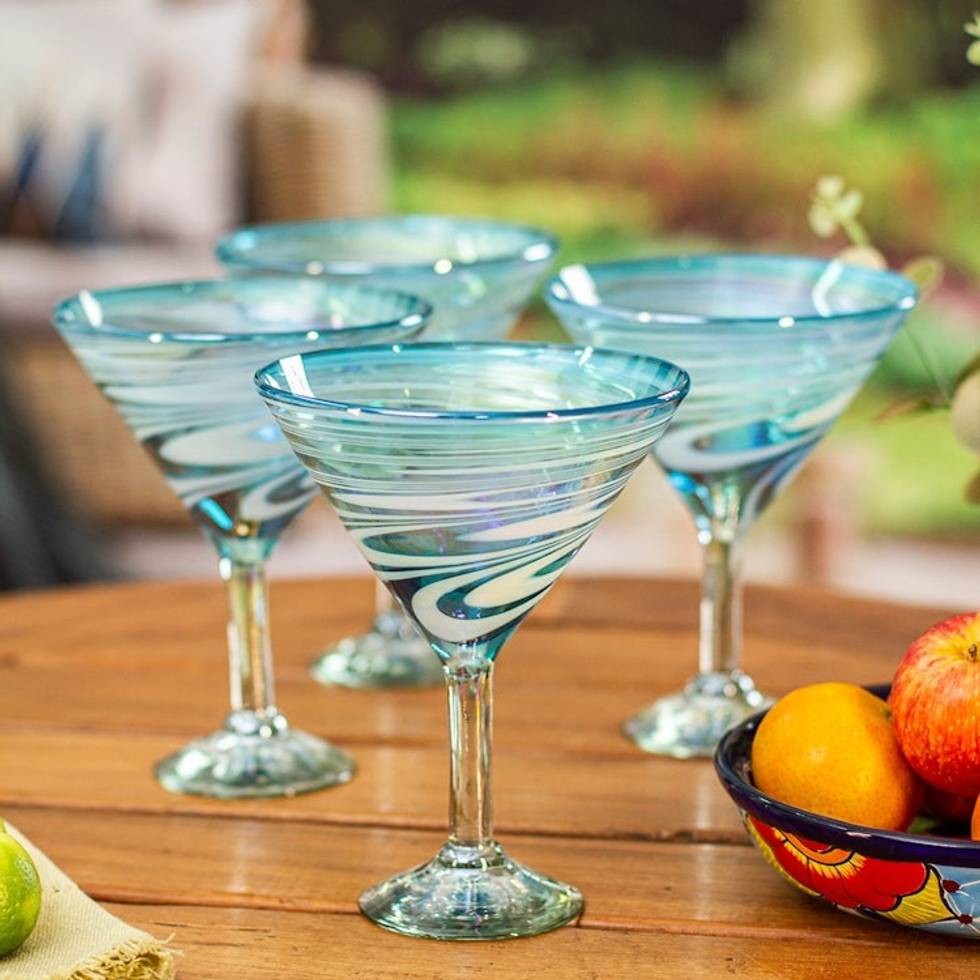 Set of 4 Turquoise and White Martini Glasses from Mexico 'Waves of Glamour' Item ID: 2669927135