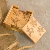 Set of 4 Turtle-Themed Laurel Wood Coasters with Storage Box 'Turtle's Drinks' Item ID: 2671769404