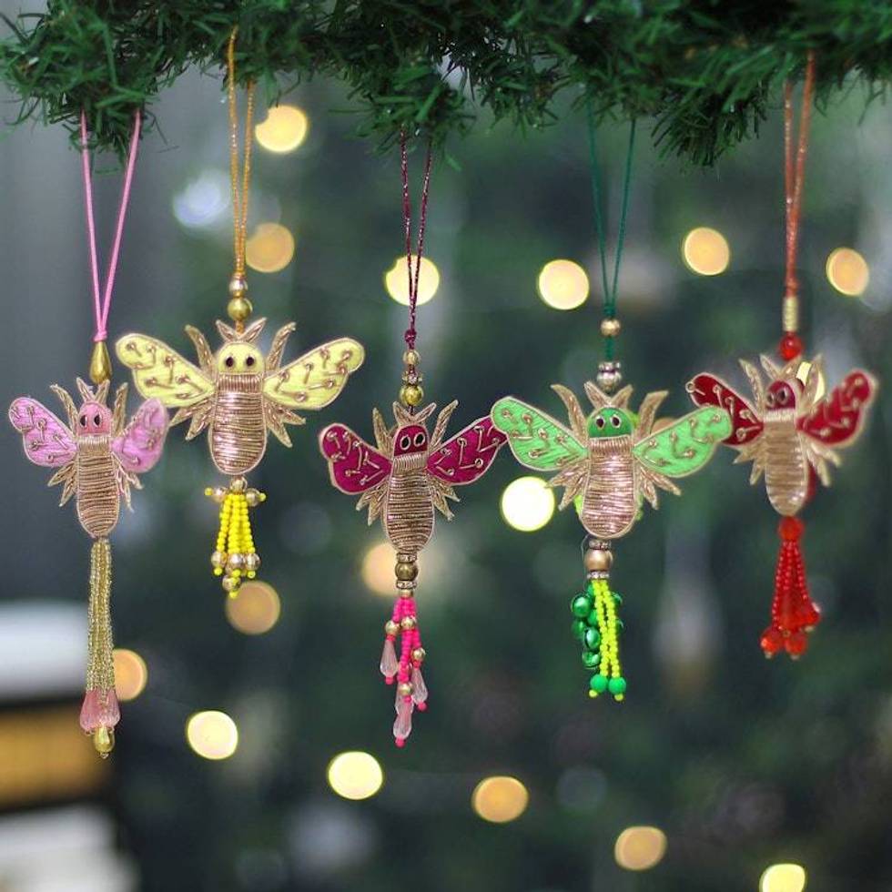 Set of 5 Cotton Beaded Bee Ornaments with Zardozi Embroidery 'Holiday Bees' Item ID: 2676665553