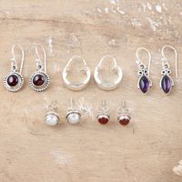 Set of 5 Gemstone Earrings Made from Sterling Silver 'Jewel Mode' Item ID: 2671623824