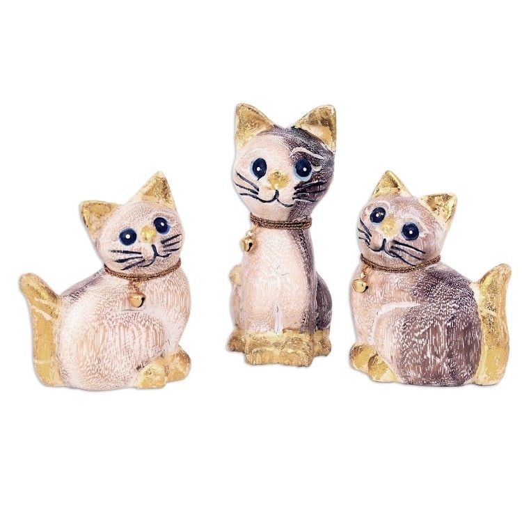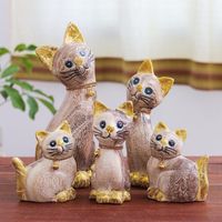 Set of 5 Hand-Carved Wood Cat Sculptures from Thailand 'Feline Gathering' Item ID: 2671798147