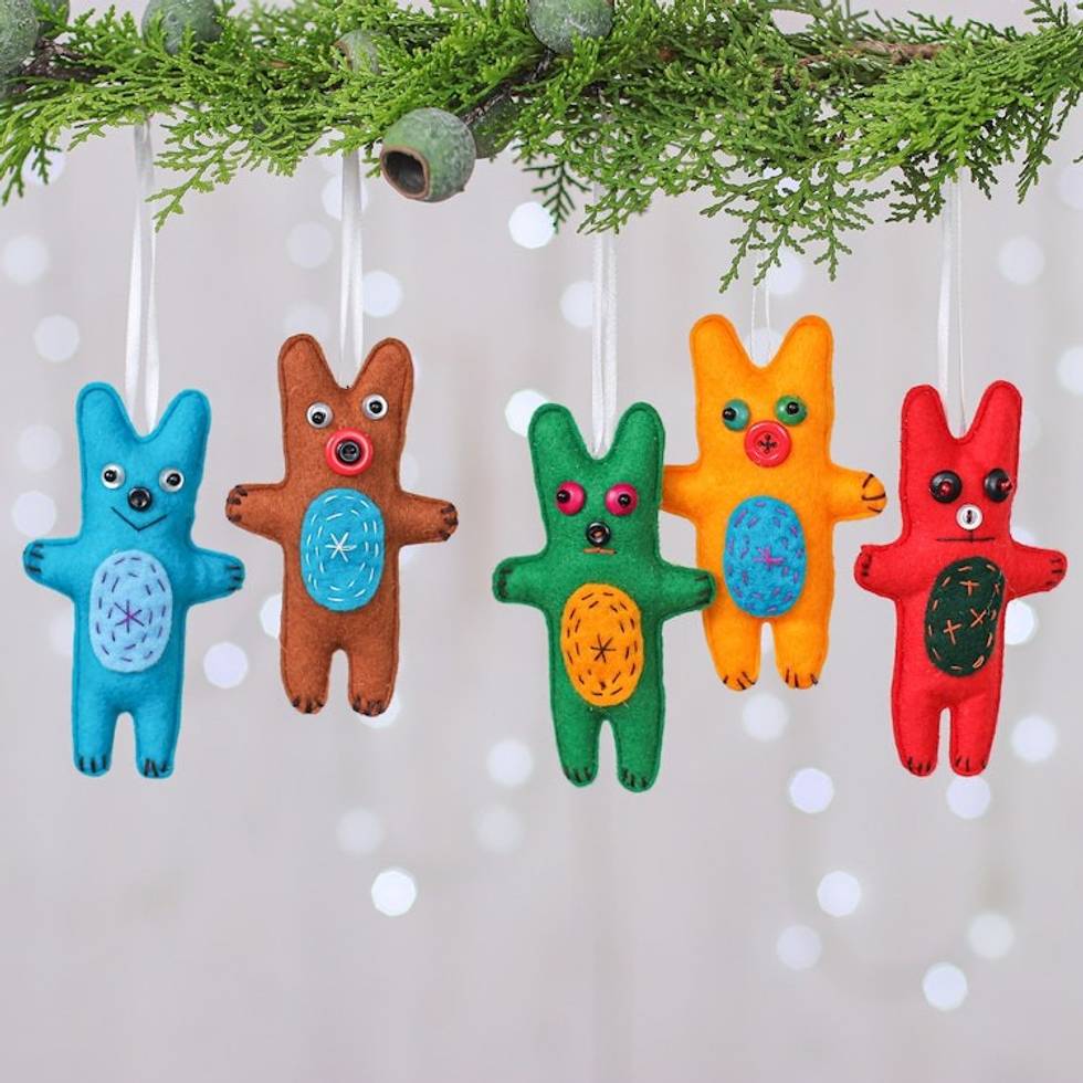 Set of 5 Handcrafted Bear Felt Ornaments in Colorful Hues 'Bear Imagination' Item ID: 2671798018