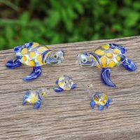Set of 5 Handmade Glass Turtle Figurines in Blue and Yellow 'Turtle Gathering' Item ID: 2669892536