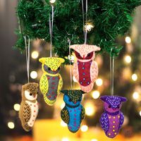 Set of 5 Handmade Owl-Themed Embroidered Wool Felt Ornaments 'Dancing Owls' Item ID: 2671782835