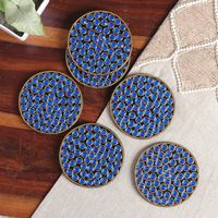 Set of 6 Blue Beaded Wood and Resin Coasters from India 'Royal Glitz' Item ID: 2676663733