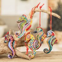 Set of 6 Ceramic Seahorse Ornaments Handmade in Guatemala 'Seahorse Squadron' Item ID: 2669933893