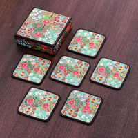 Set of 6 Floral Painted Wood and Papier Mache Coasters 'Blooming Time' Item ID: 2671782087