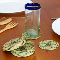 Set of 6 Green and Red Natural Fiber Coasters from Mexico 'Green Eco' Item ID: 2671807783