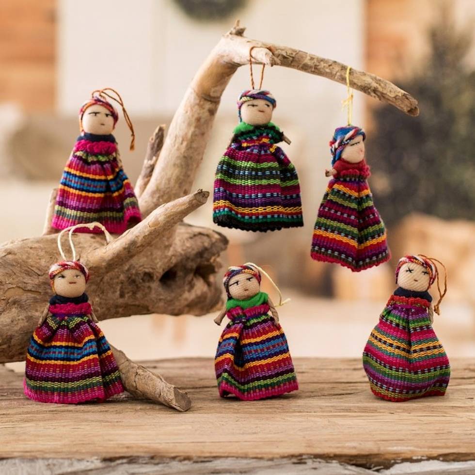 Set of 6 Guatemalan Worry Doll Ornaments Crafted by Hand 'Worry Dolls Share the Love' Item ID: 2671627082