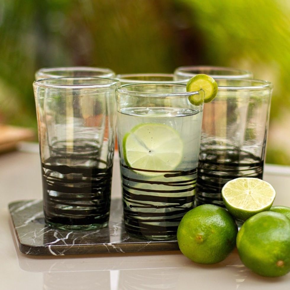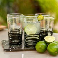 Set of 6 Hand Blown Black Spiral Glass Tumblers from Mexico 'Ebony Spin' Item ID: 2669931904
