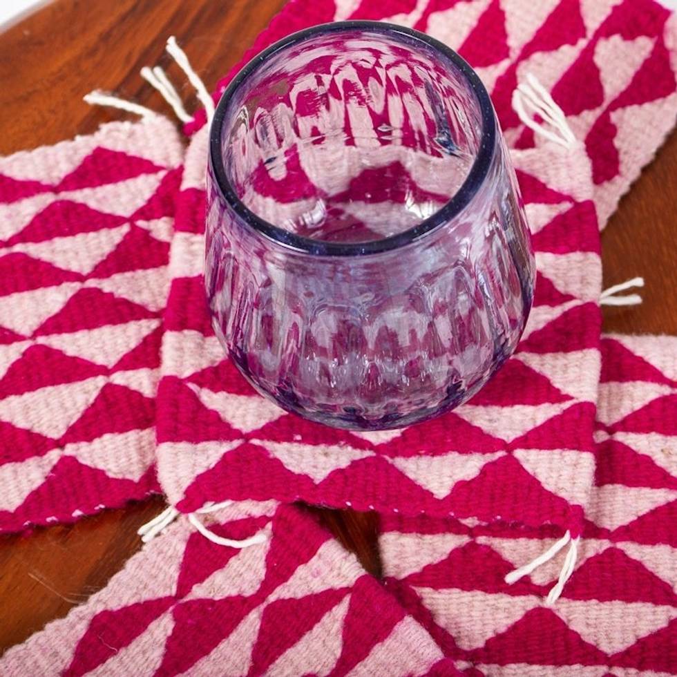 Set of 6 Hand Loomed Wool Coasters in Fuchsia and Pink 'Zapotec Diamond in Fuchsia' Item ID: 2671808088