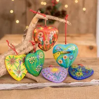 Set of 6 Hand-Painted Ceramic Ornaments with Cotton Bag 'Hearts of Nature' Item ID: 2669923645