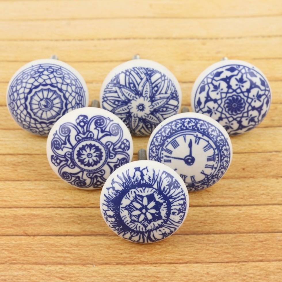 Set of 6 Handcrafted Blue Ceramic Knobs with Unique Patterns 'Blue Imagination' Item ID: 2669924984