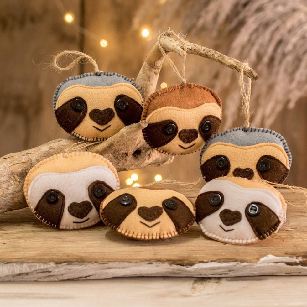 Set of 6 Handcrafted Felt Ornaments of Adorable Sloths 'Sleepy Smiles' Item ID: 2671771729