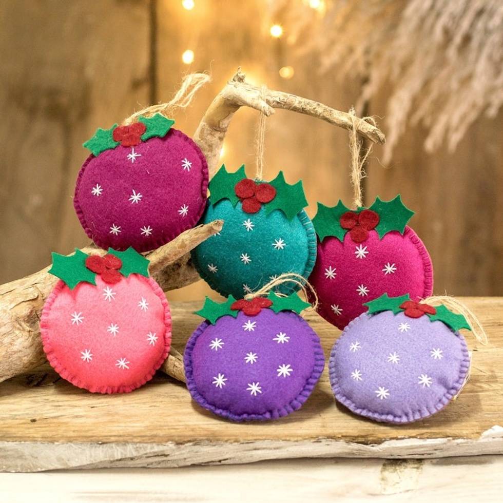 Set of 6 Handmade Felt Ornaments in Multicolor Palette 'Merry Sparks' Item ID: 2671772476