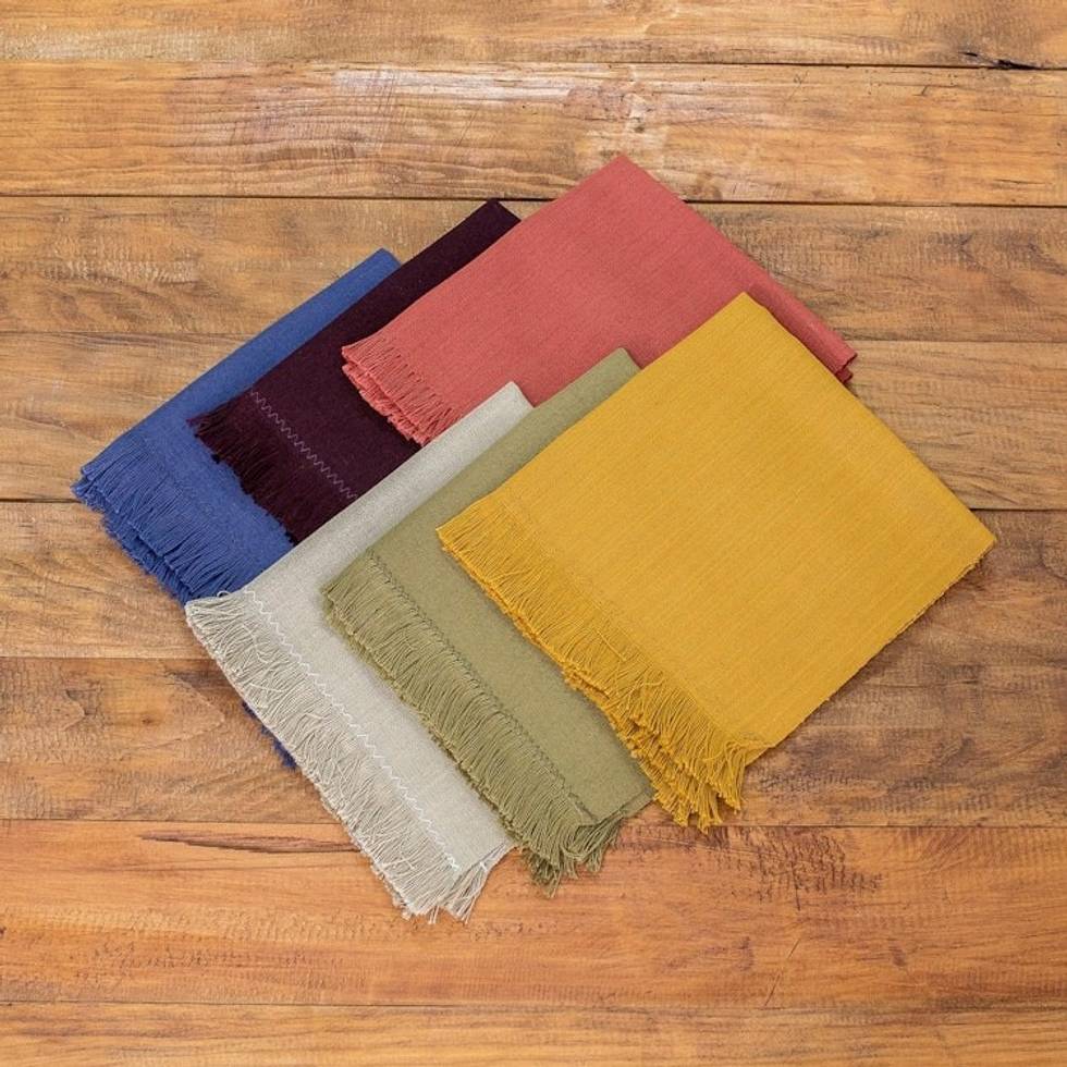 Set of 6 Handwoven Cotton Napkins with Colorful Palette 'Autumn Facets' Item ID: 2671772333