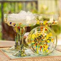Set of 6 Multicolor Hand Blown Glass Margarita Glasses 'Confetti Festival' Item ID: 2669897363