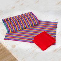 Set of 6 Multicolored Striped Cotton Placemats and Napkins 'Rainbow Inspiration' Item ID: 2669933760
