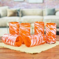 Set of 6 Orange Artisan Crafted Hand Blown Glasses 'Festive Orange'