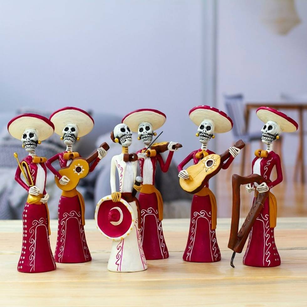 Set of 6 Painted Classic Female Mariachi Ceramic Sculptures 'Underworld Girl Serenade' Item ID: 2671807467